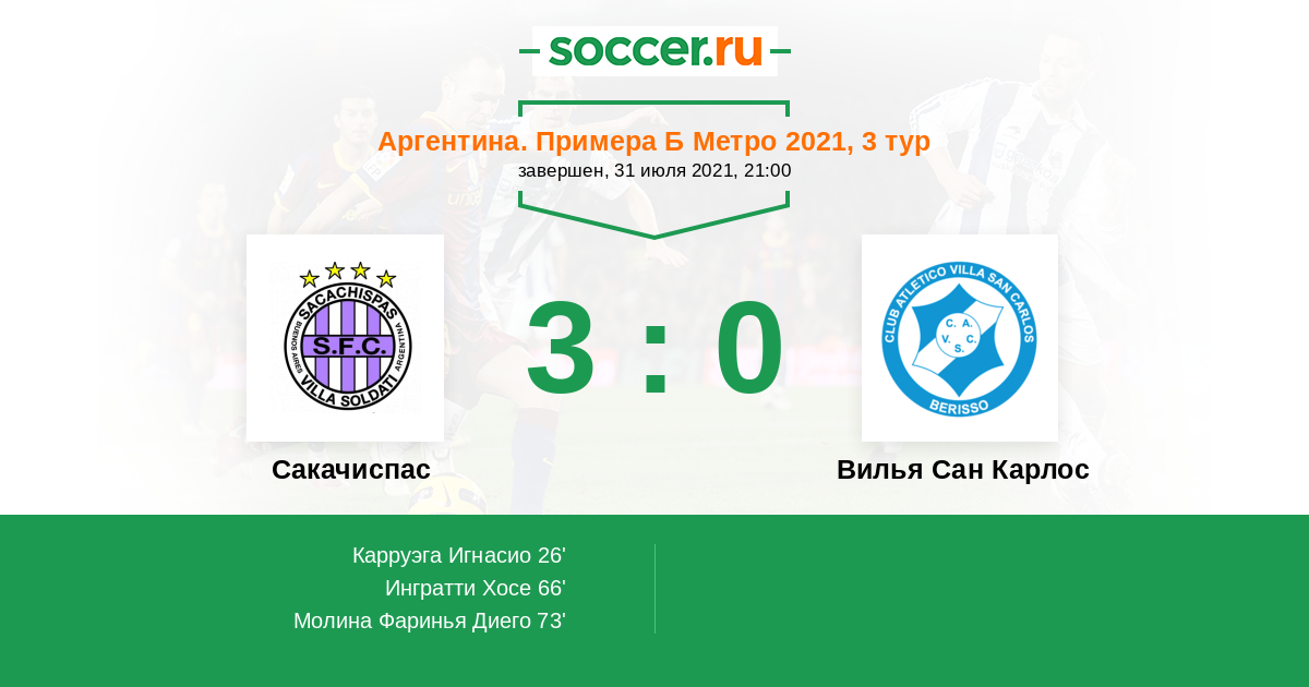 Протокол матча Сакачиспас против Вилья Сан Карлос