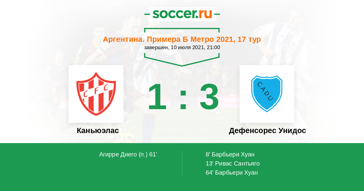 Протокол матча Каньюэлас против Дефенсорес Унидос