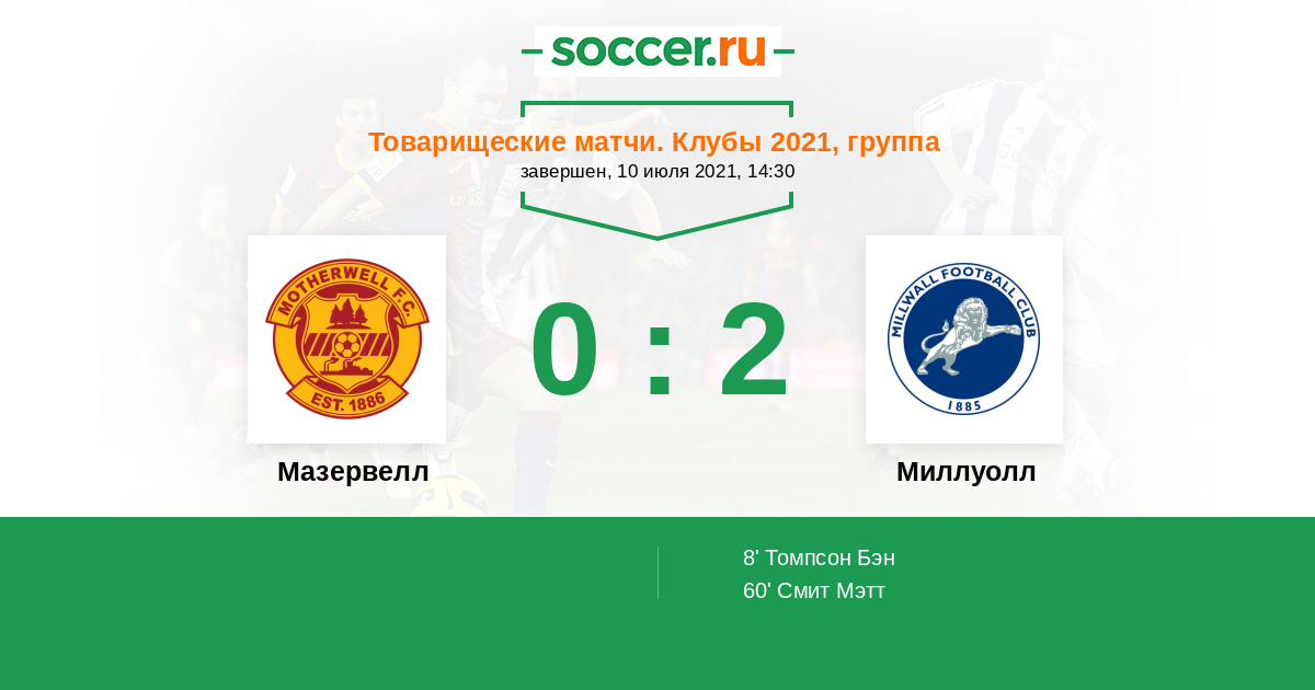 Протокол матча Мазервелл против Миллуолл