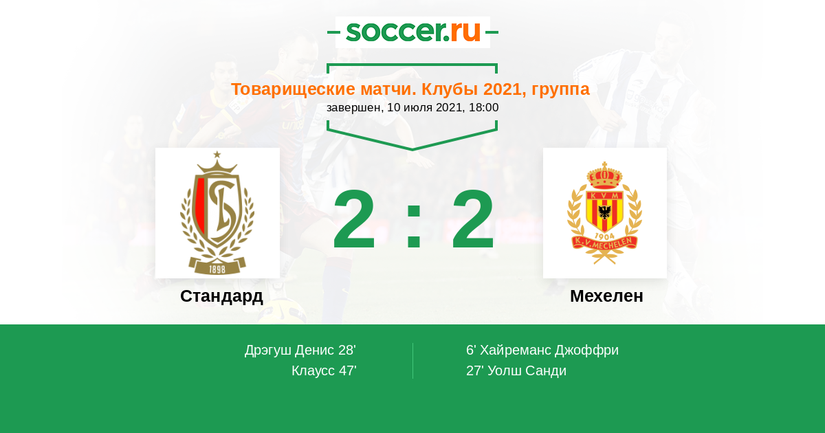 Протокол матча Стандард против Мехелен