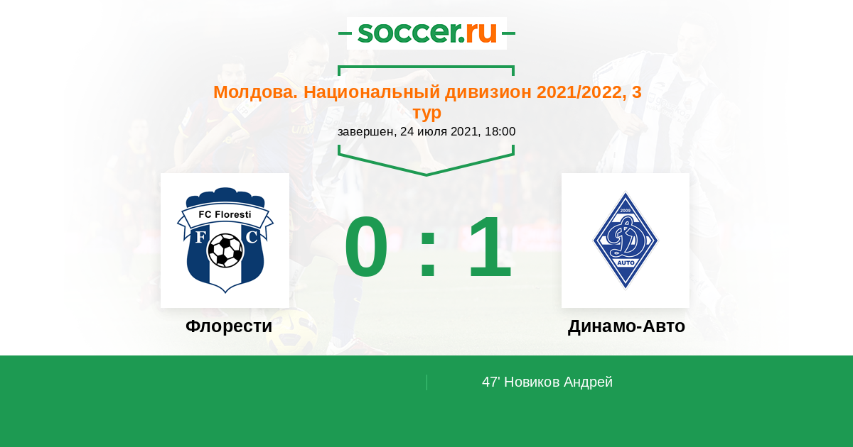 Протокол матча Флорести против Динамо-Авто