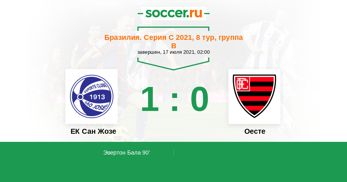 Протокол матча ЕК Сан Жозе против Оесте