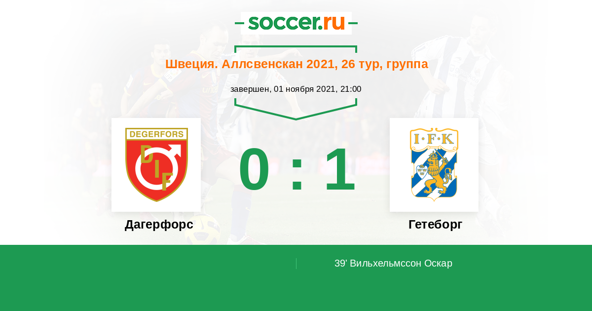Протокол матча Дагерфорс против Гетеборг