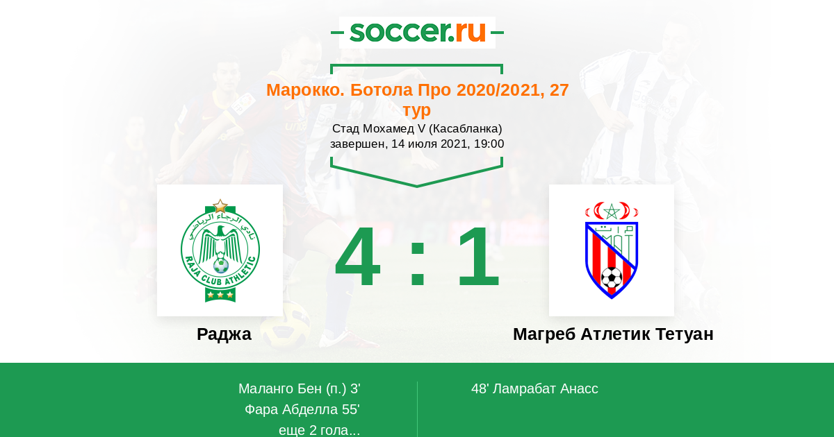 Протокол матча Раджа против Магреб Атлетик Тетуан