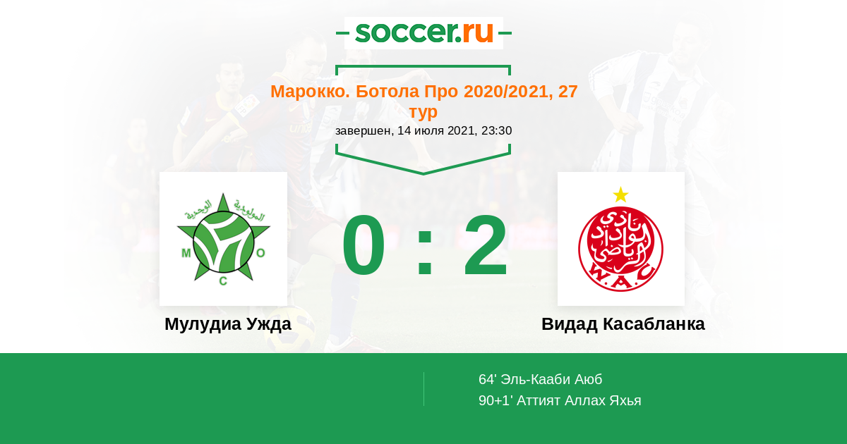Протокол матча Мулудиа Ужда против Видад Касабланка