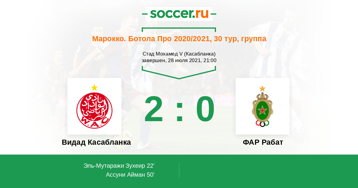 Протокол матча Видад Касабланка против ФАР Рабат