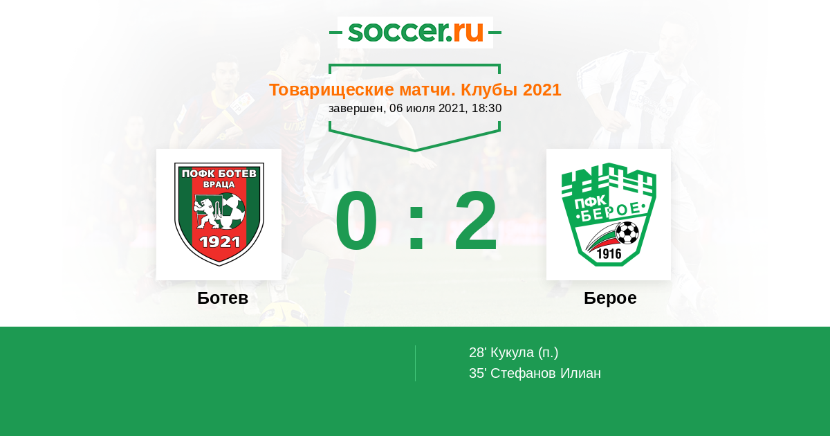 Протокол матча Ботев против Берое