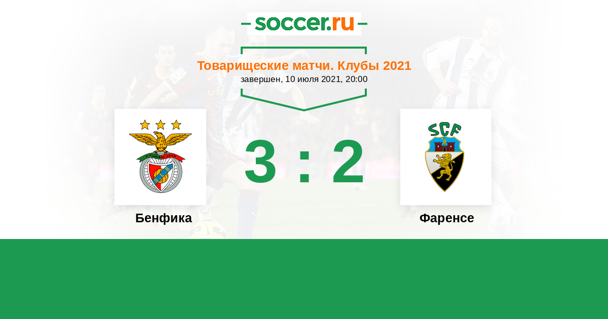 Товарищеские матчи. Клубы 12.07.2024 Бенфика Логотип футбольный клуб Бенфика (Лиссабон) 5:0 Логотип футбольный клуб Фаренсе (Фару) Фаренсе