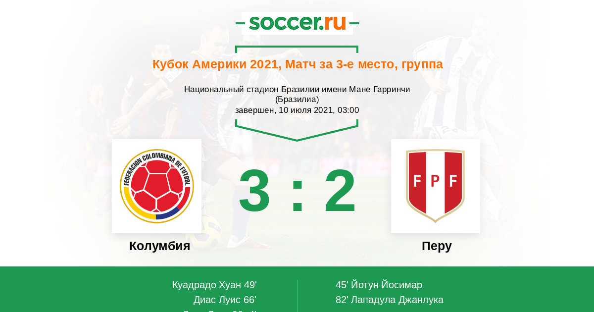 66' (2:1) Диас Луис (14) (Варгас Камило (12))