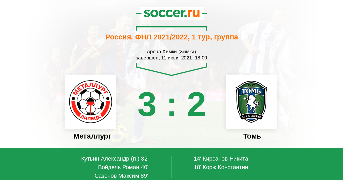 Протокол матча Металлург против Томь