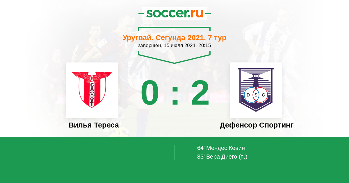 Протокол матча Вилья Тереса против Дефенсор Спортинг