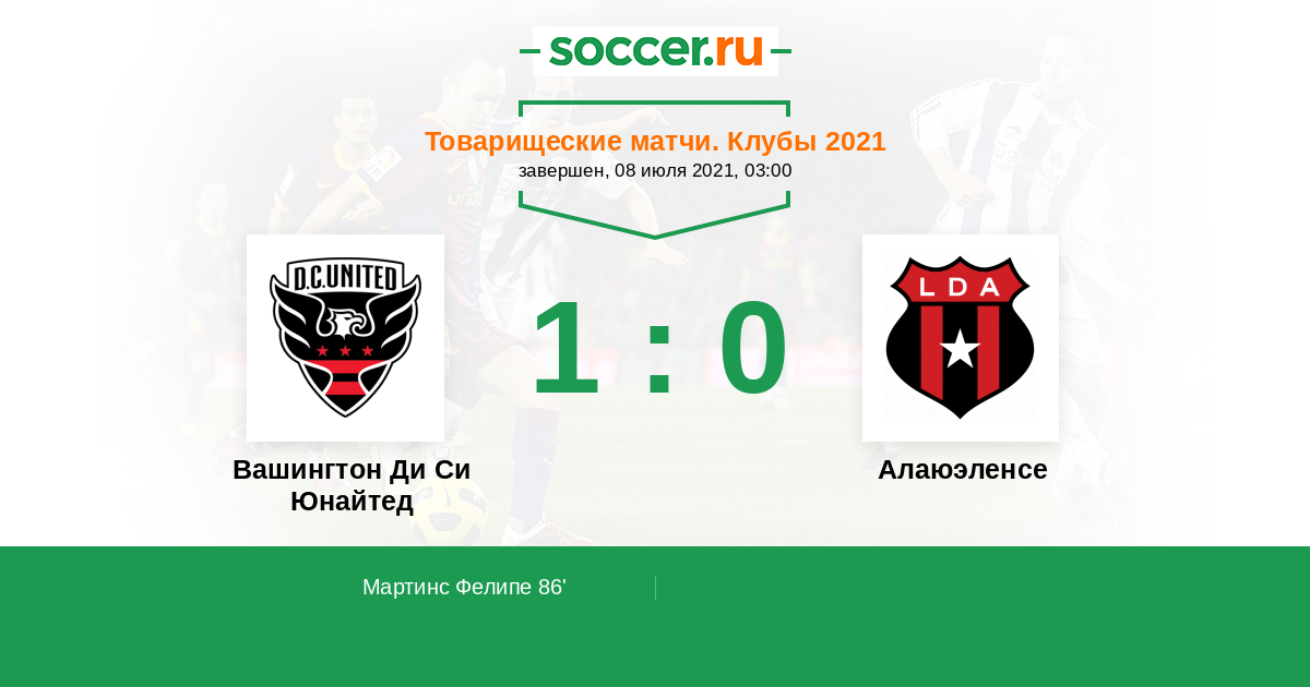 Протокол матча Вашингтон Ди Си Юнайтед против Алаюэленсе