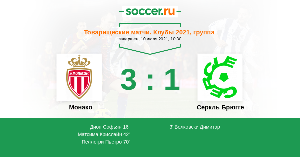 Протокол матча Монако против Серкль Брюгге