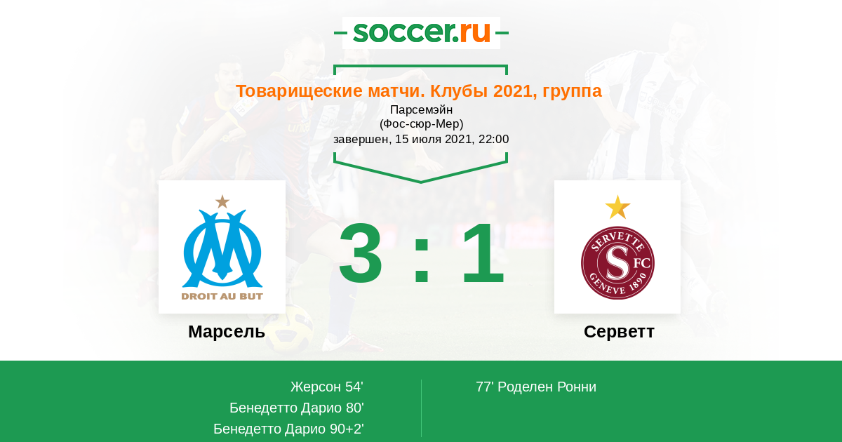 Протокол матча Марсель против Серветт