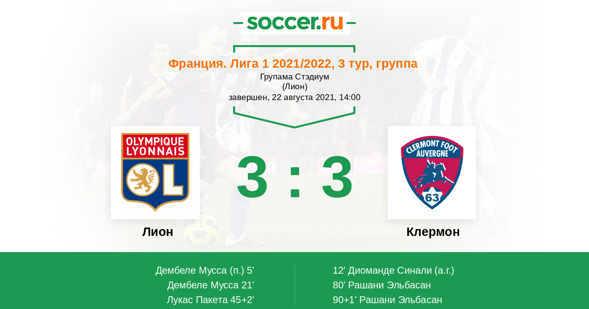 Протокол матча Лион против Клермон