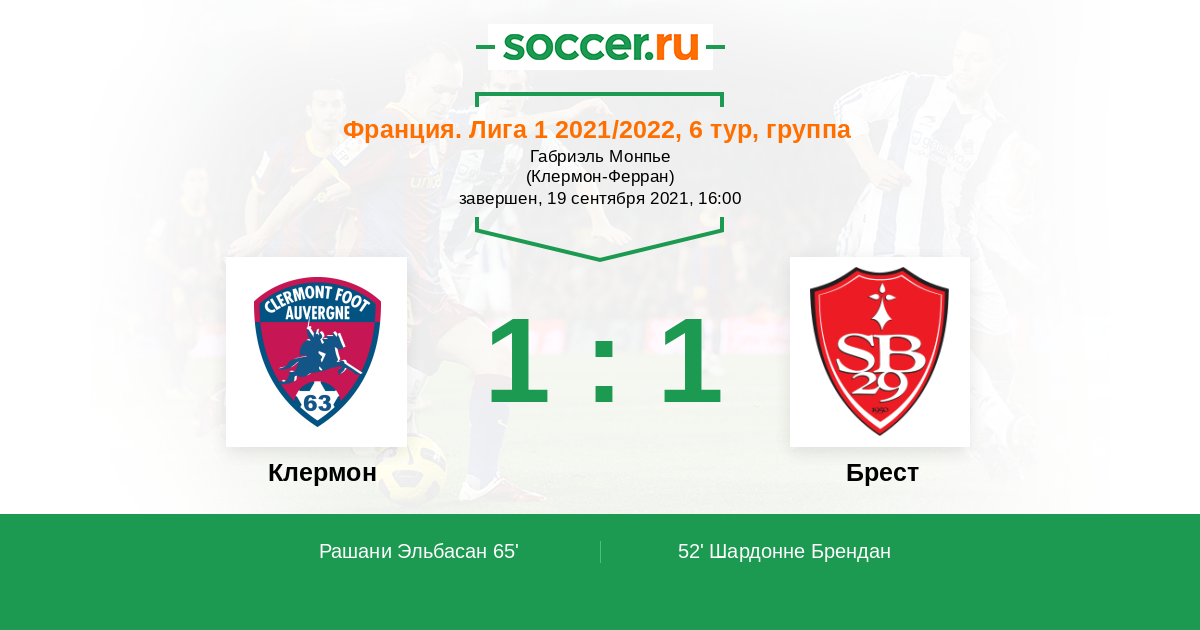 Протокол матча Клермон против Брест