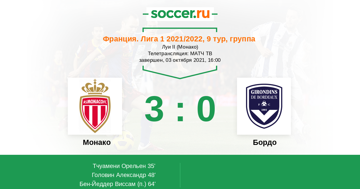 Протокол матча Монако против Бордо