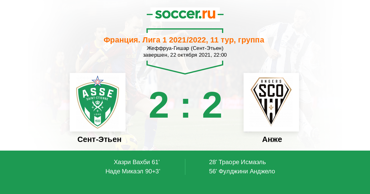 Протокол матча Сент-Этьен против Анже