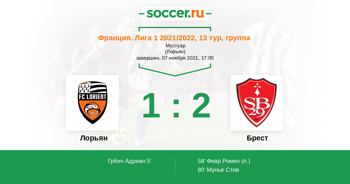 Протокол матча Лорьян против Брест