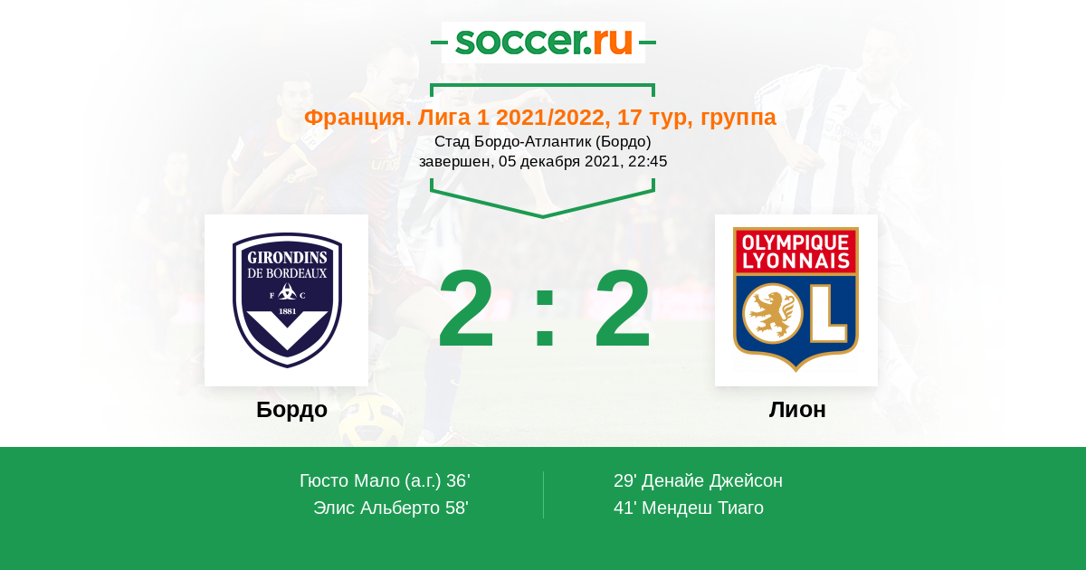 Протокол матча Бордо против Лион
