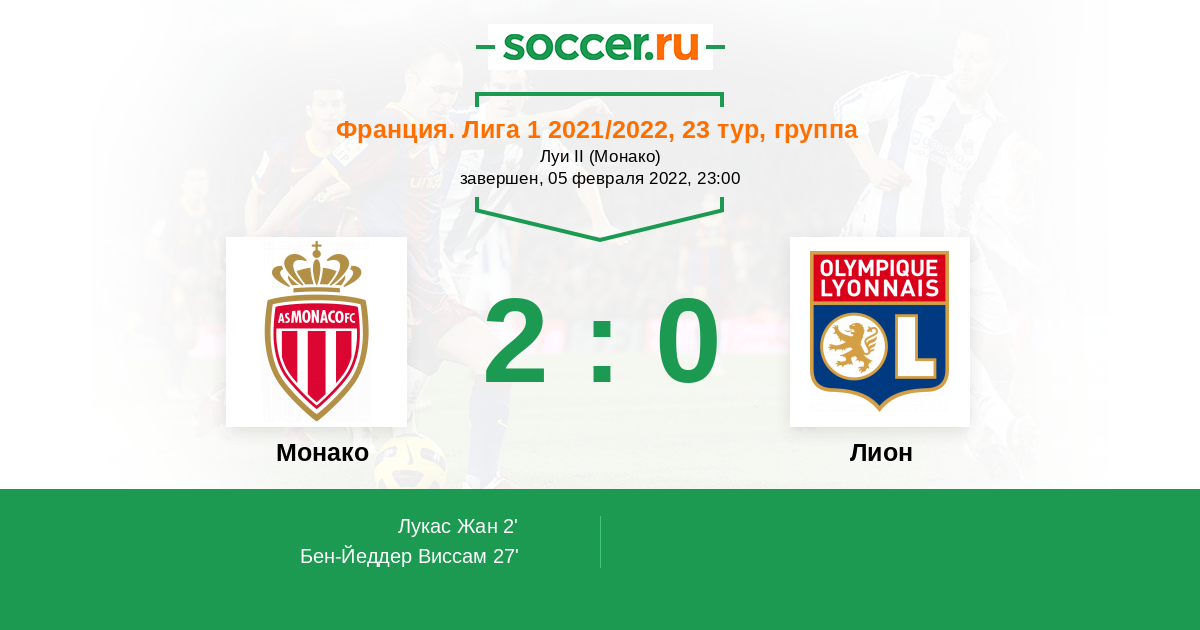 Протокол матча Монако против Лион