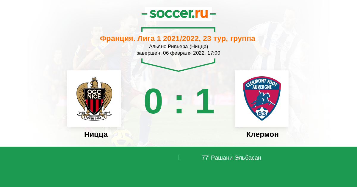 Протокол матча Ницца против Клермон