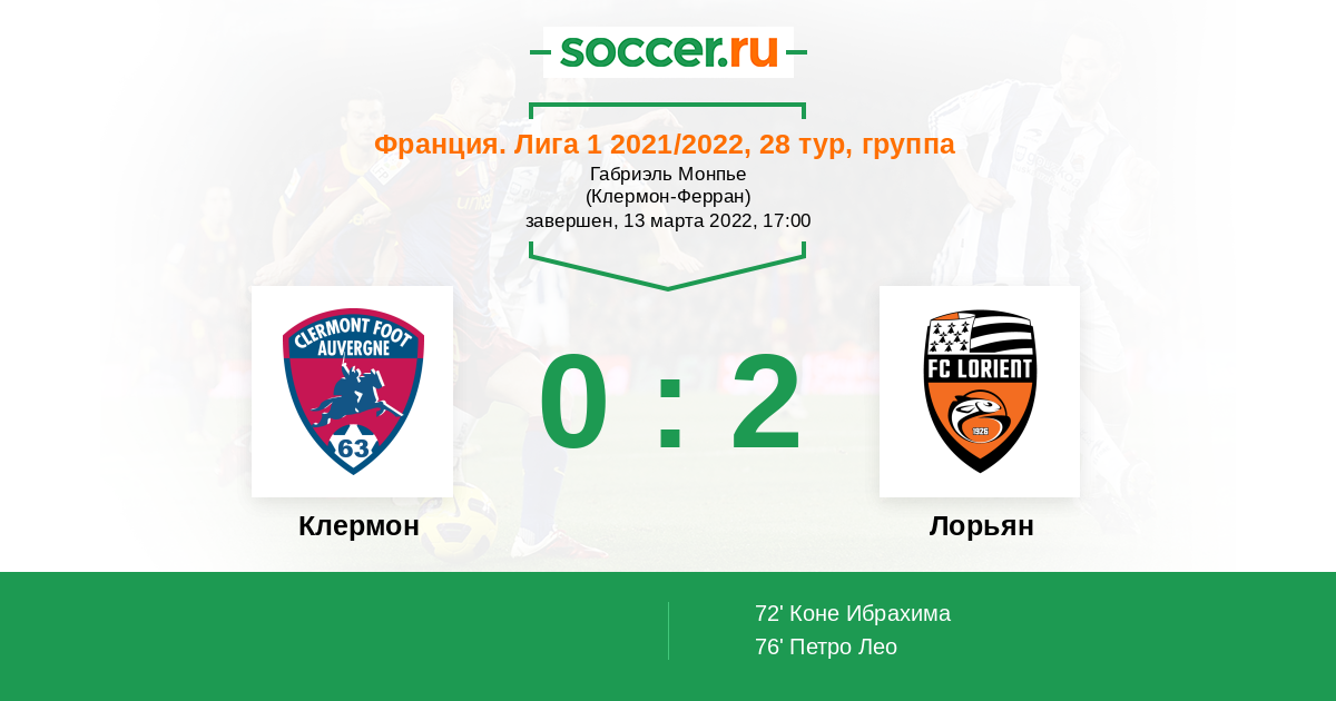 Протокол матча Клермон против Лорьян
