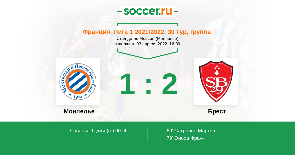Протокол матча Монпелье против Брест
