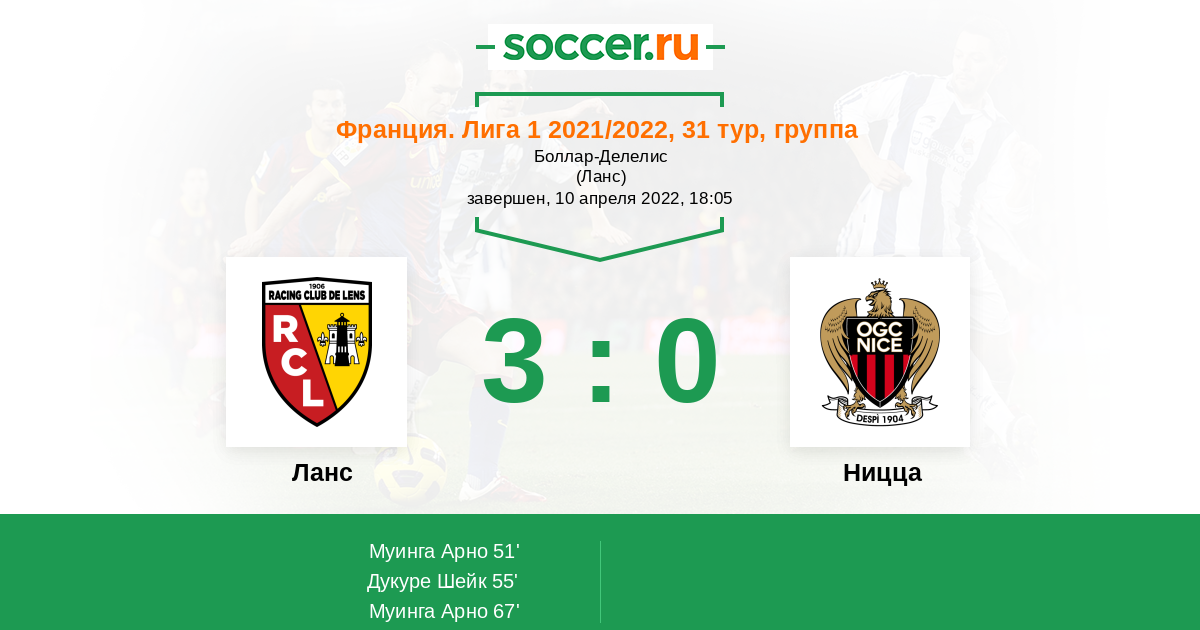 Протокол матча Ланс против Ницца