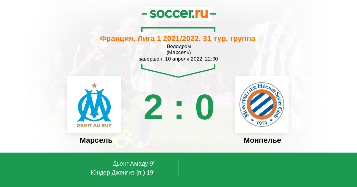 Протокол матча Марсель против Монпелье