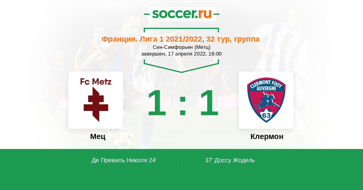 Протокол матча Мец против Клермон