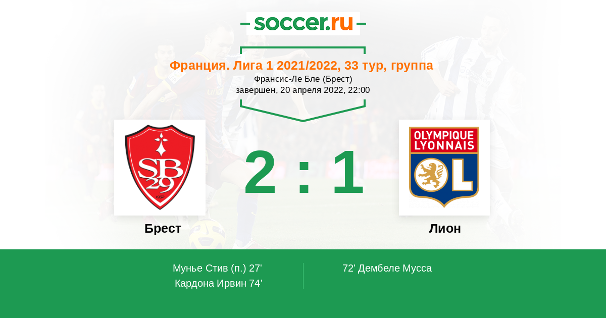 Протокол матча Брест против Лион