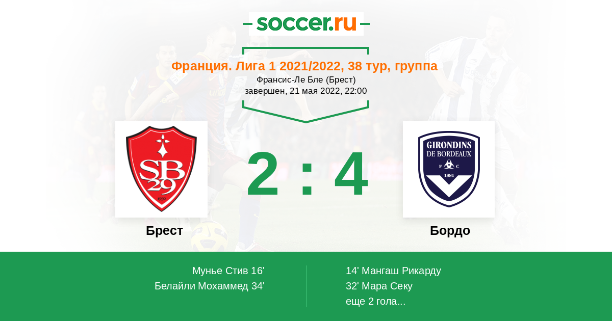 Протокол матча Брест против Бордо