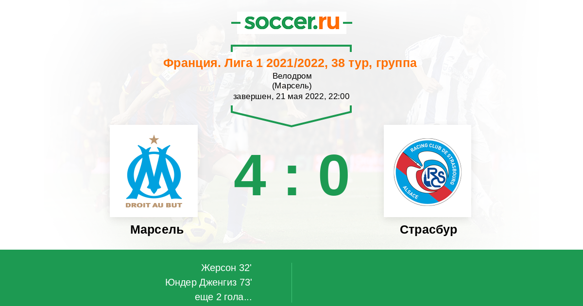 Протокол матча Марсель против Страсбур