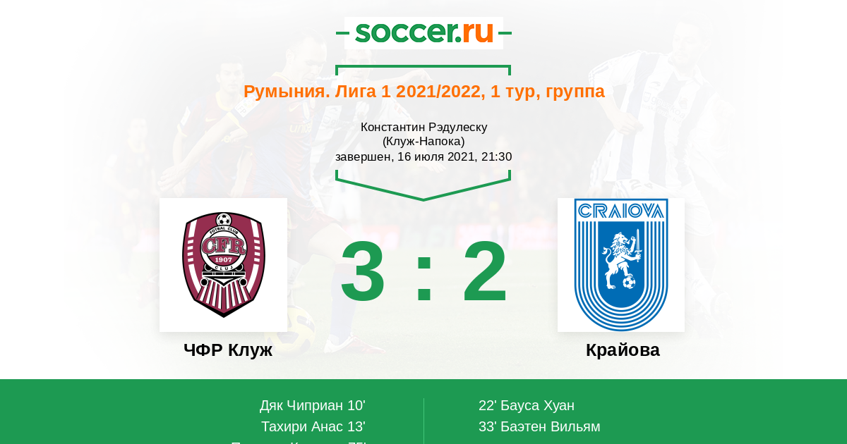 33' (2:2) Баэтен Вильям (24) (Альбу Константин (8))