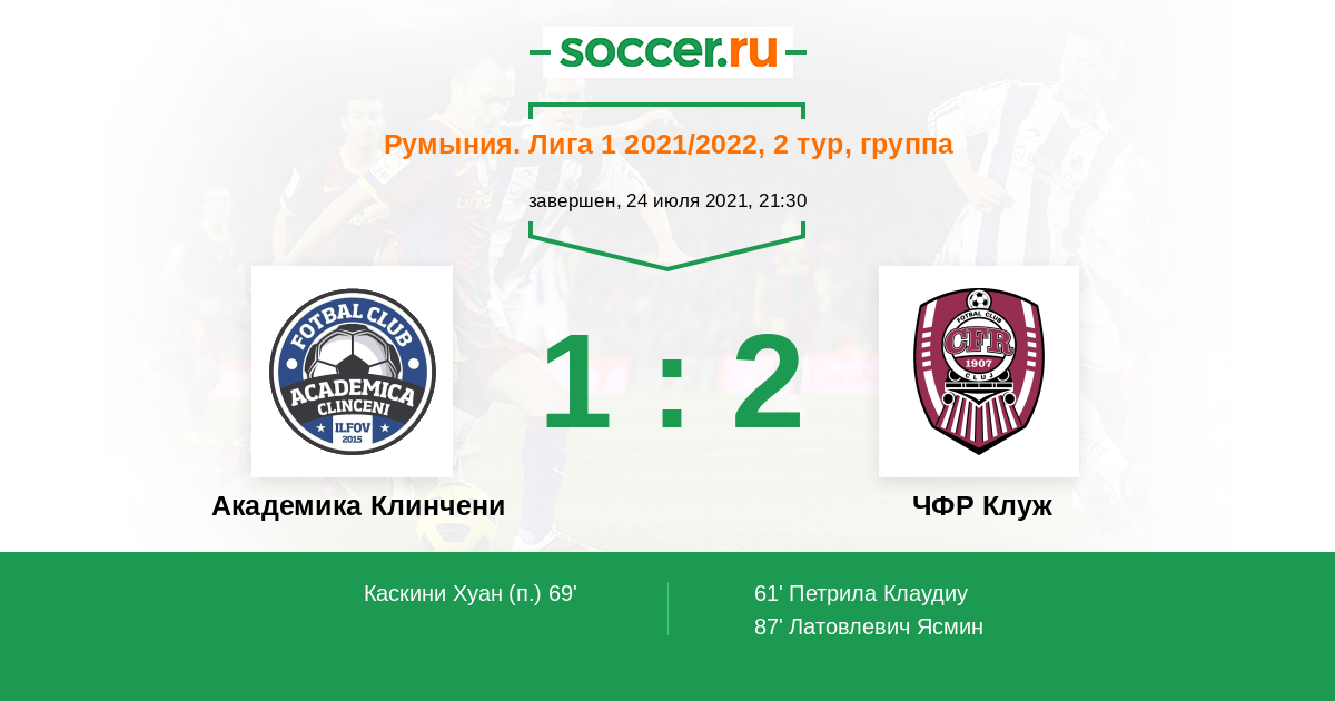 Протокол матча Академика Клинчени против ЧФР Клуж