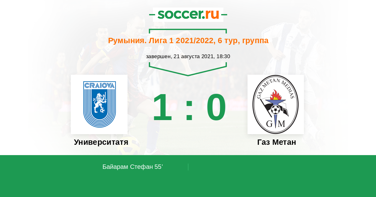 Протокол матча Университатя Крайова против Газ Метан