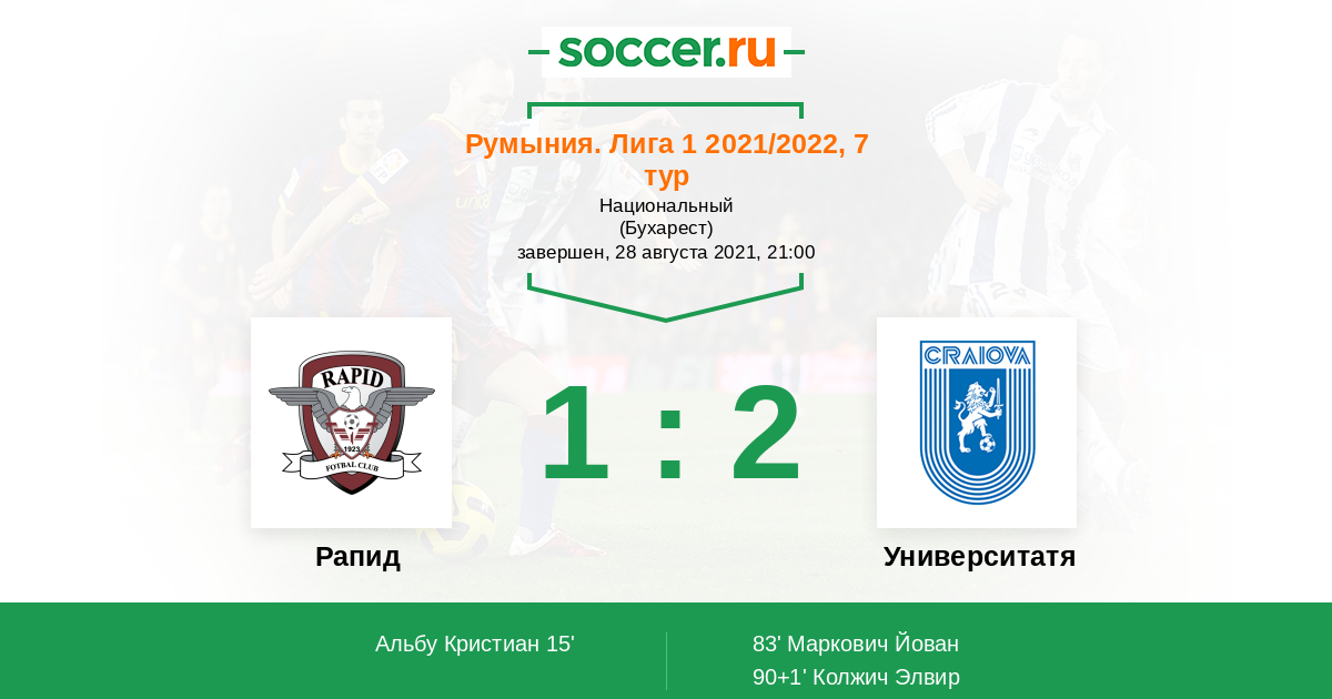 Протокол матча Рапид против Университатя Крайова