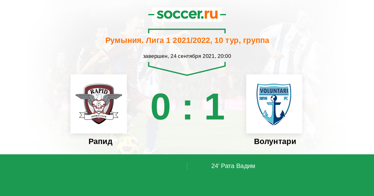 Протокол матча Рапид против Волунтари