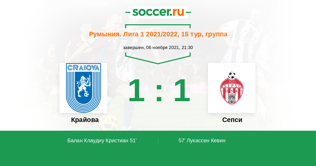 51' (1:0) Балан Клаудиу Кристиан (9) (Компаньо Андреа (33))