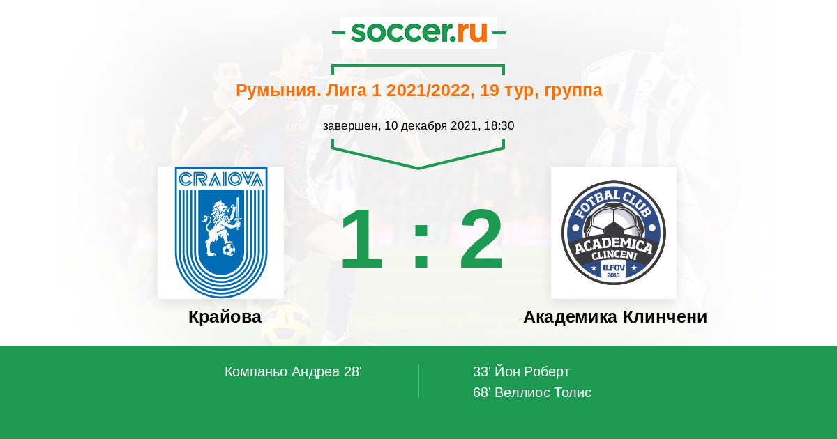 Протокол матча Крайова против Академика Клинчени