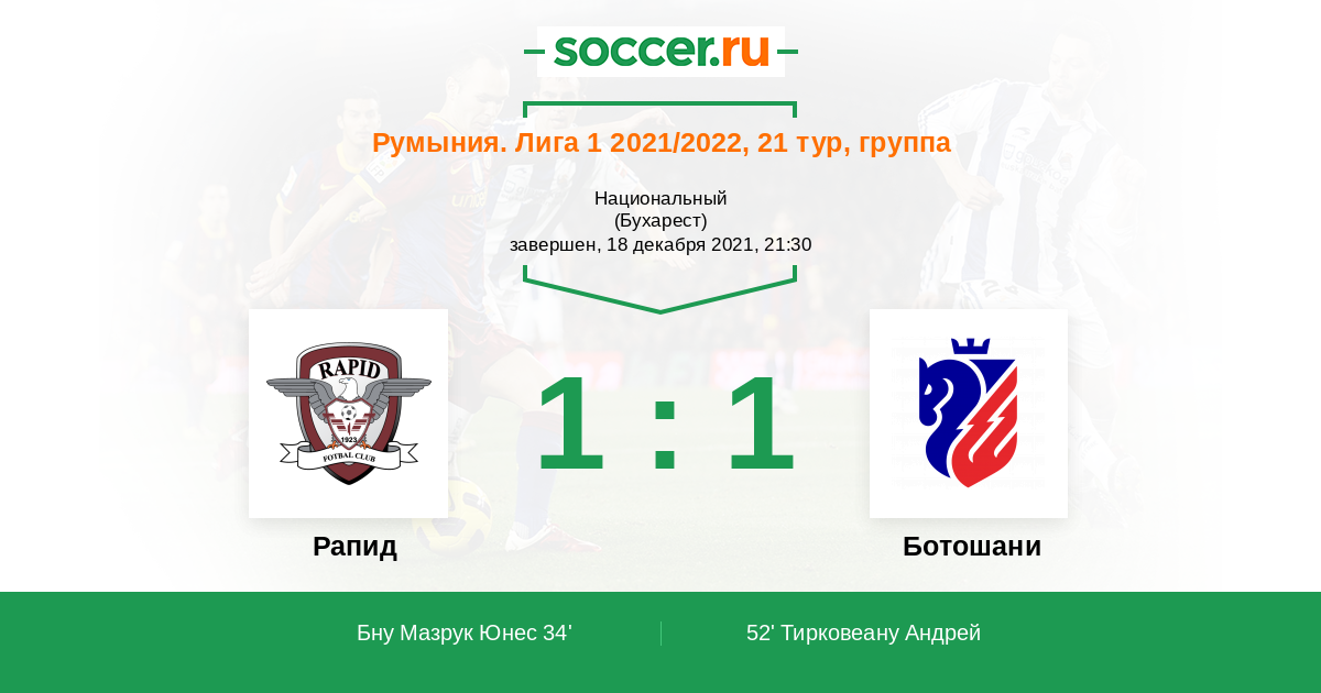 Протокол матча Рапид против Ботошани