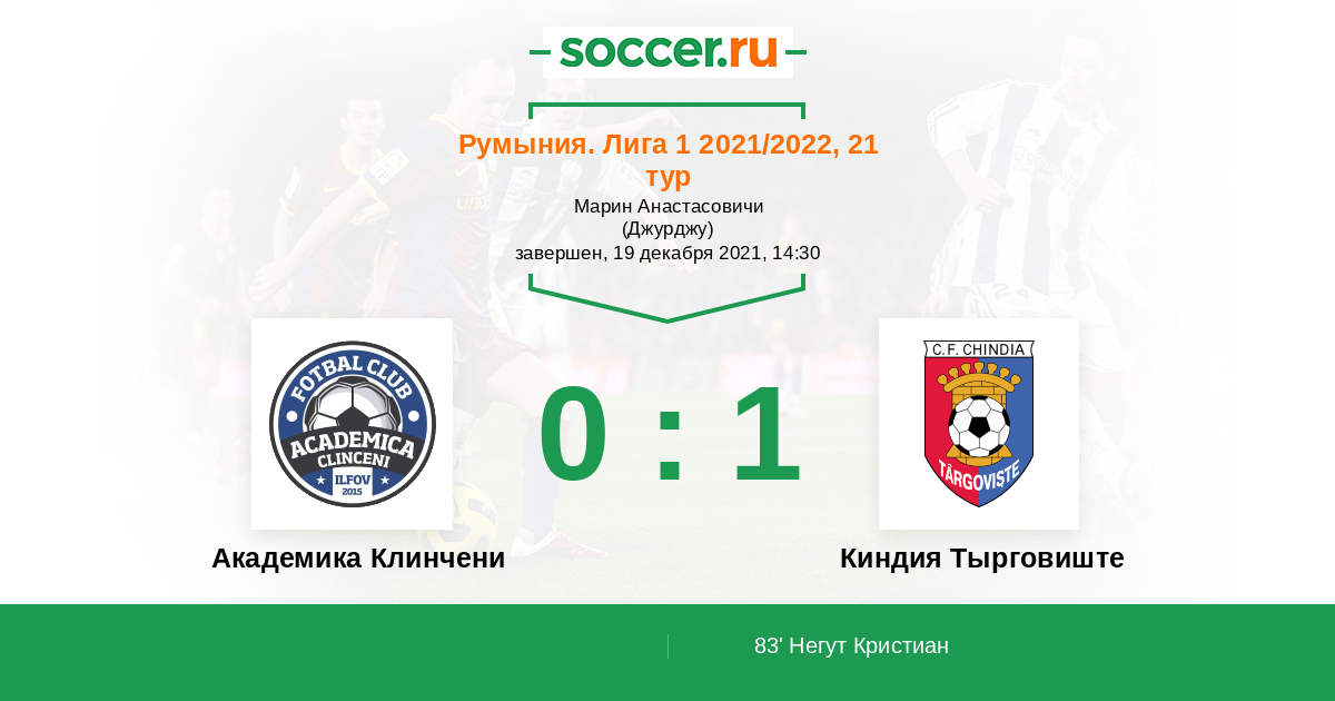 83' (0:1) Негут Кристиан (10) (Попа Даниэль (19))