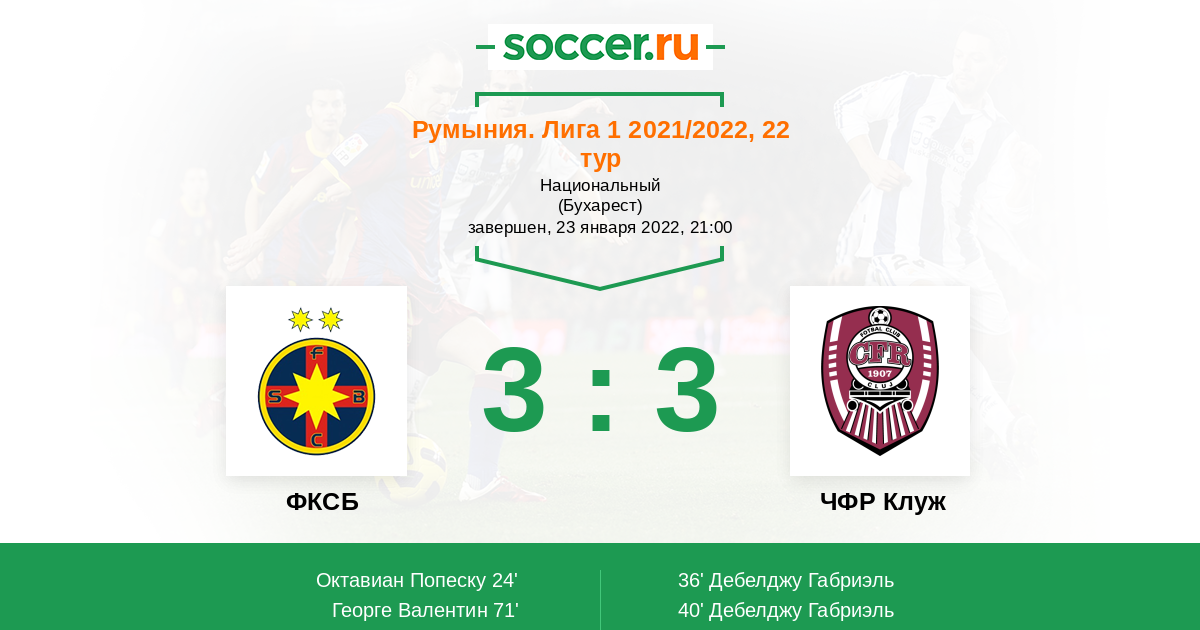 Протокол матча ФКСБ против ЧФР Клуж