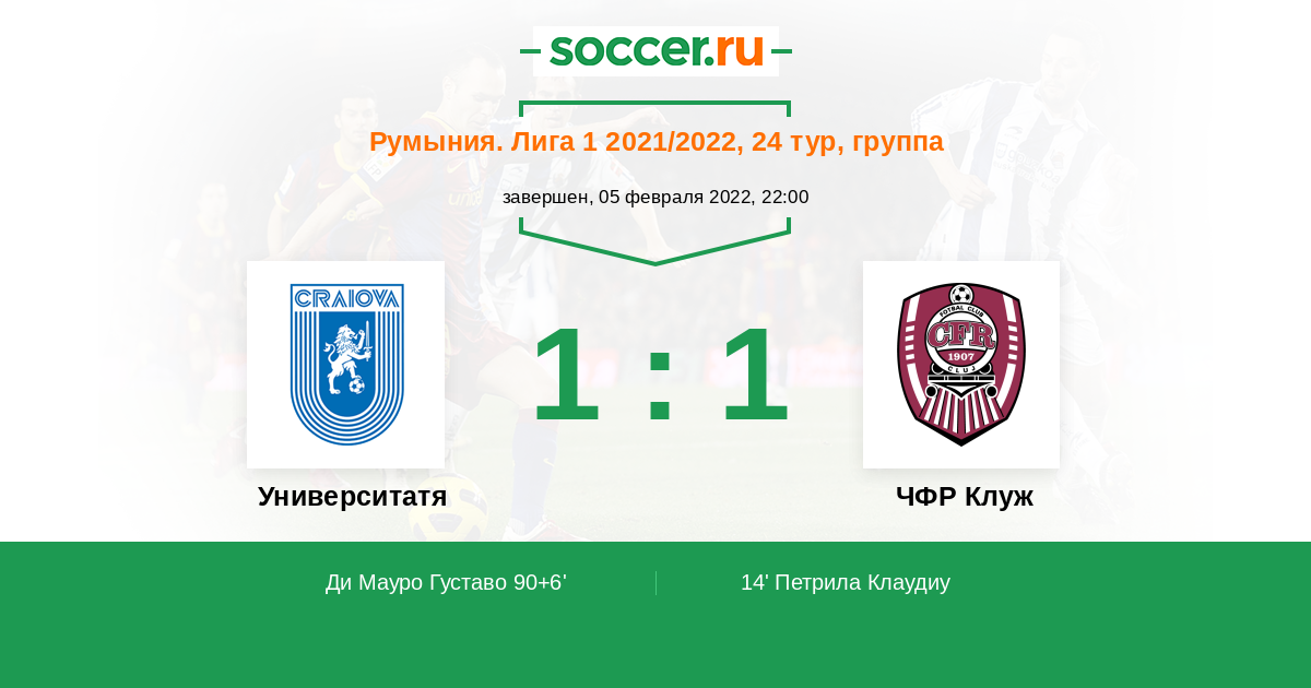 Протокол матча Университатя Крайова против ЧФР Клуж