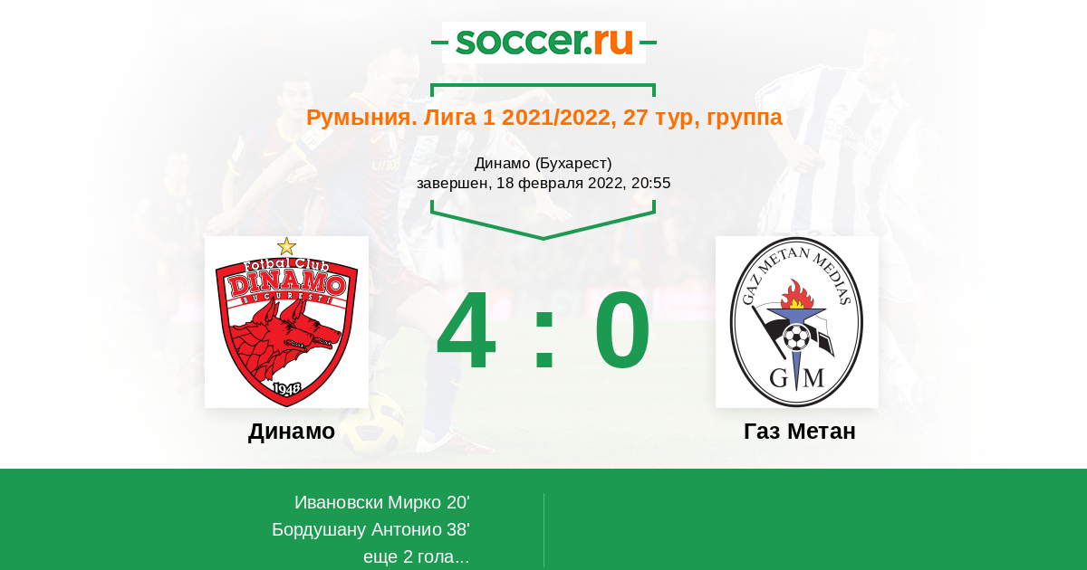 Протокол матча Динамо против Газ Метан