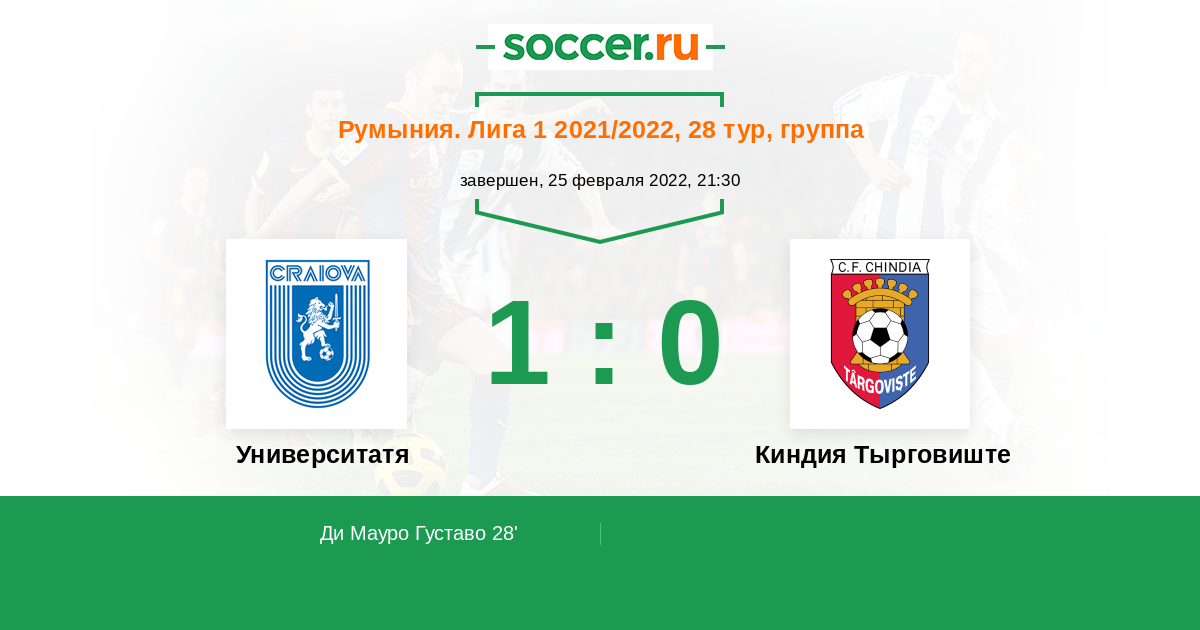 Протокол матча Университатя Крайова против Киндия Тырговиште