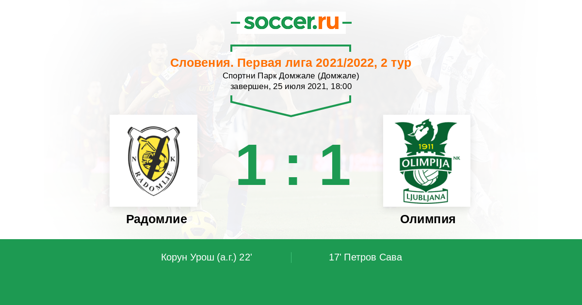 Протокол матча Радомлие против Олимпия