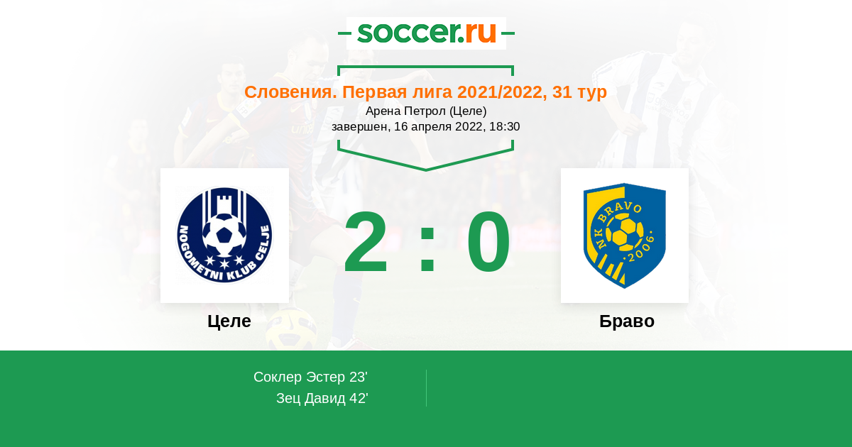 Протокол матча Целе против Браво