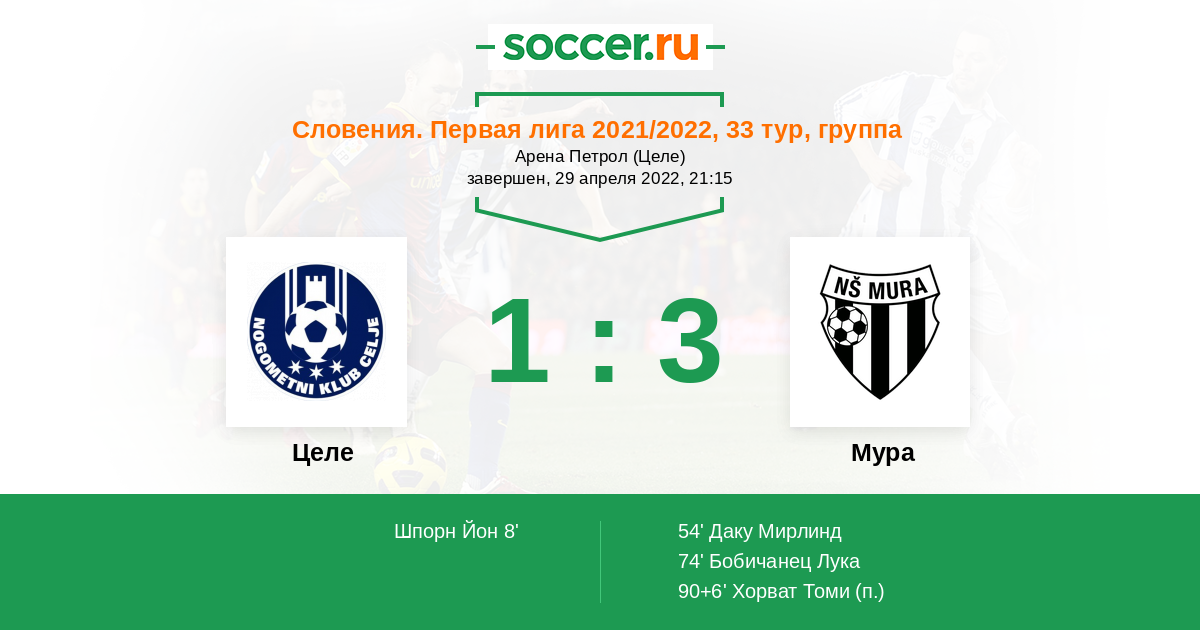 Протокол матча Целе против Мура